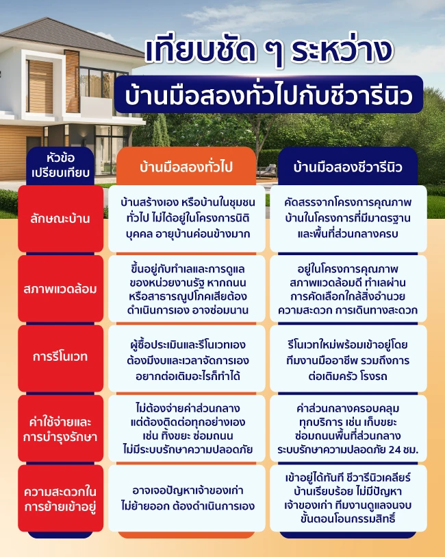 แต่ถ้าคุณให้ความสำคัญกับความพร้อมเข้าอยู่ ความปลอดภัย และการดูแลตั้งแต่ต้นจนจบ บ้านมือสองชีวารีนิวก็เป็นอีกทางเลือกที่ช่วยลดความกังวลในหลายเรื่องได้