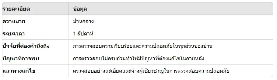 - การตรวจสอบขั้นสุดท้าย: เดินสำรวจทุกห้องและพื้นที่ภายนอกเพื่อตรวจสอบความเรียบร้อย