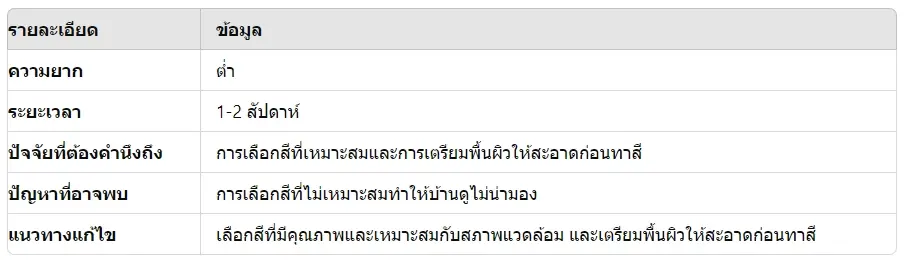 - การเลือกสี: เลือกสีที่มีคุณภาพและเหมาะสมกับสภาพแวดล้อม