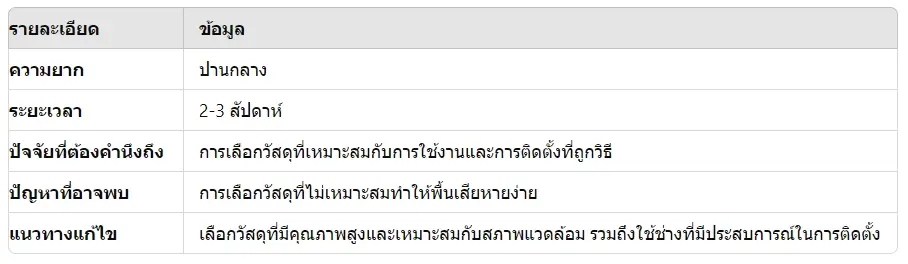 - ลามิเนต: ราคาประหยัดและติดตั้งง่าย เหมาะสำหรับห้องนอนและห้องนั่งเล่น