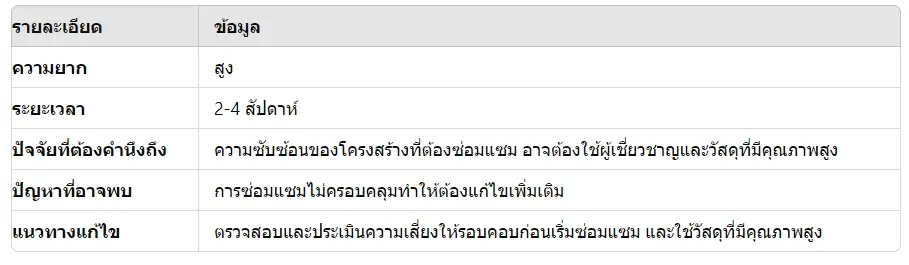 - การเสริมโครงสร้าง: เพิ่มเสาเหล็กหรือคอนกรีตในส่วนที่มีปัญหา