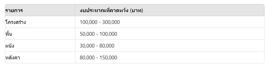 การกำหนดงบประมาณเป็นสิ่งสำคัญ วางแผนงบประมาณสำหรับแต่ละส่วนของบ้าน เพื่อป้องกันการใช้จ่ายเกินจำเป็น