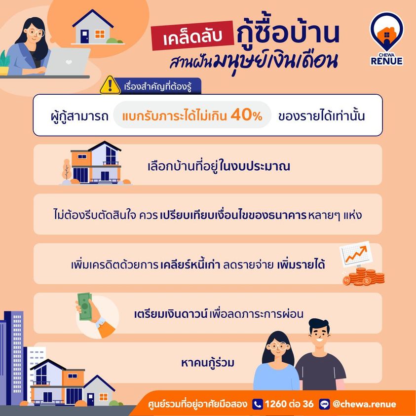 มนุษย์เงินเดือนอยากกู้ซื้อบ้านต้องอ่านทางนี้ . หลักการสำคัญอย่างแรกที่ต้องรู้คือ “ผู้กู้สามารถแบกรับภาระได้ไม่เกิน 40% ของรายได้เท่านั้น”...
