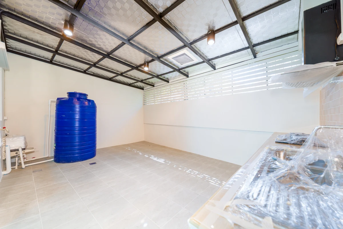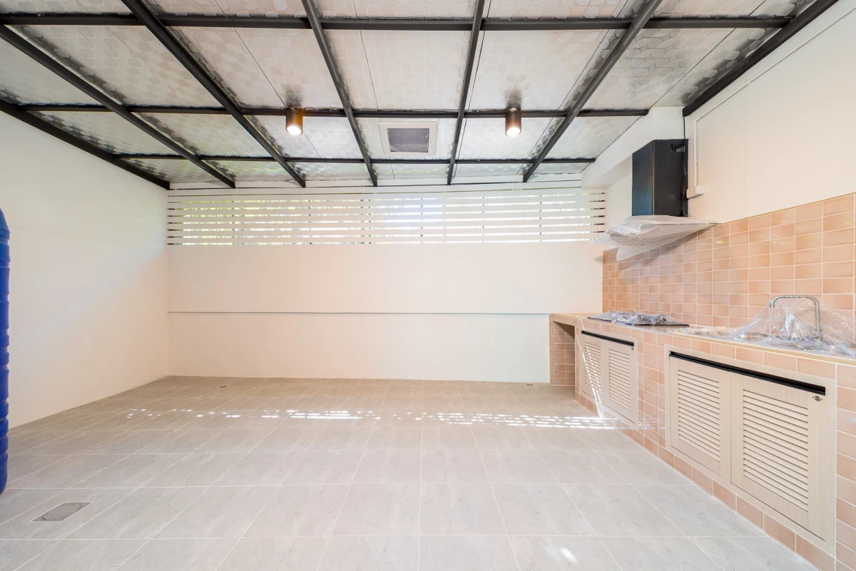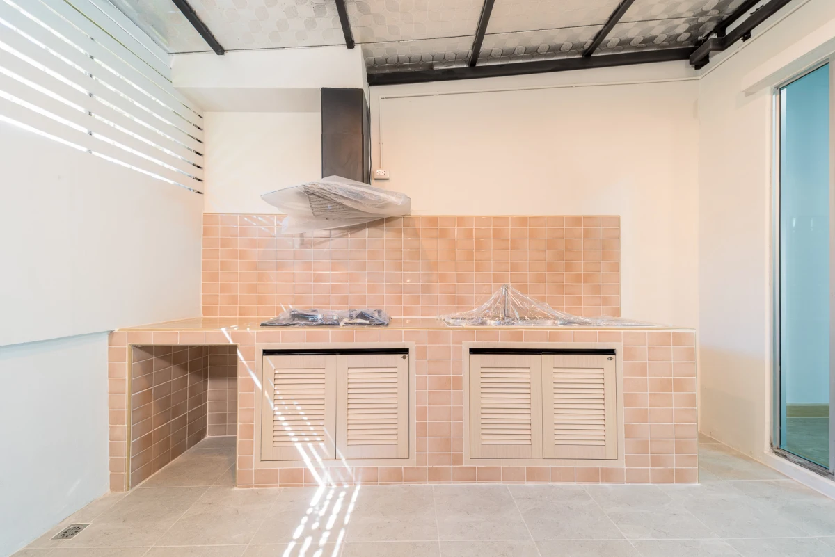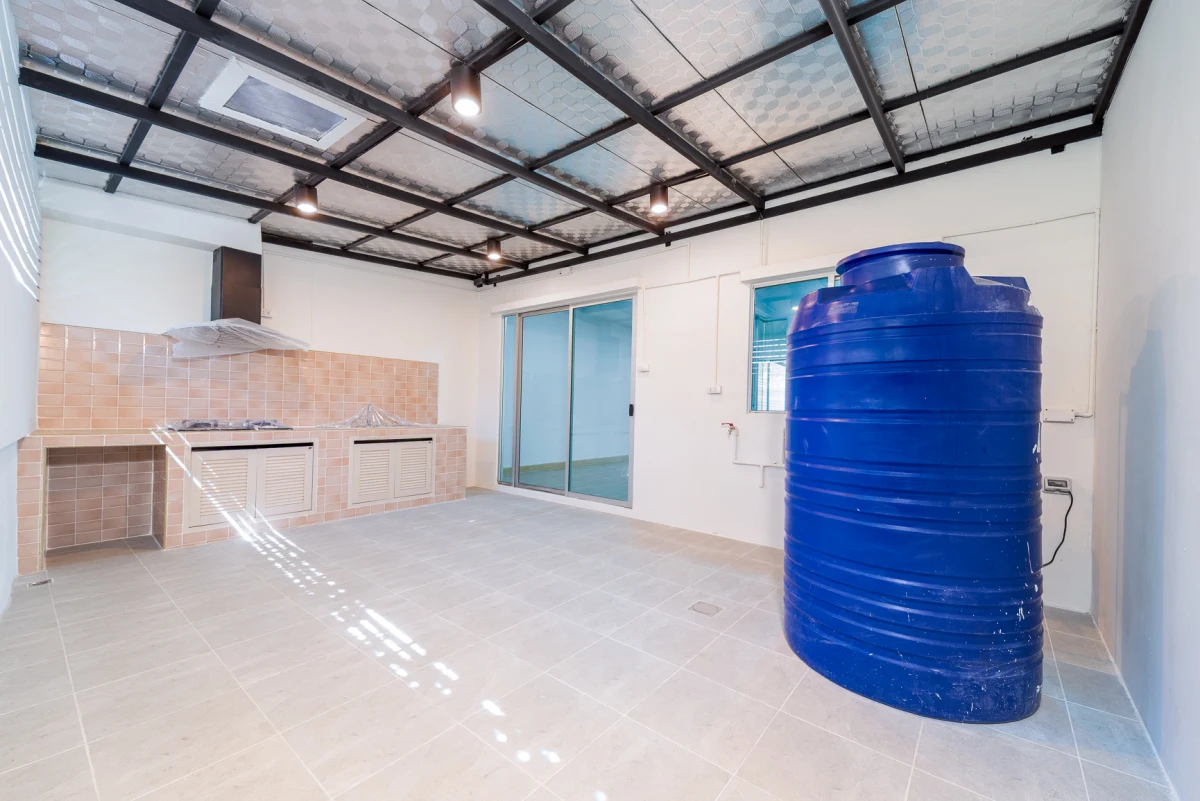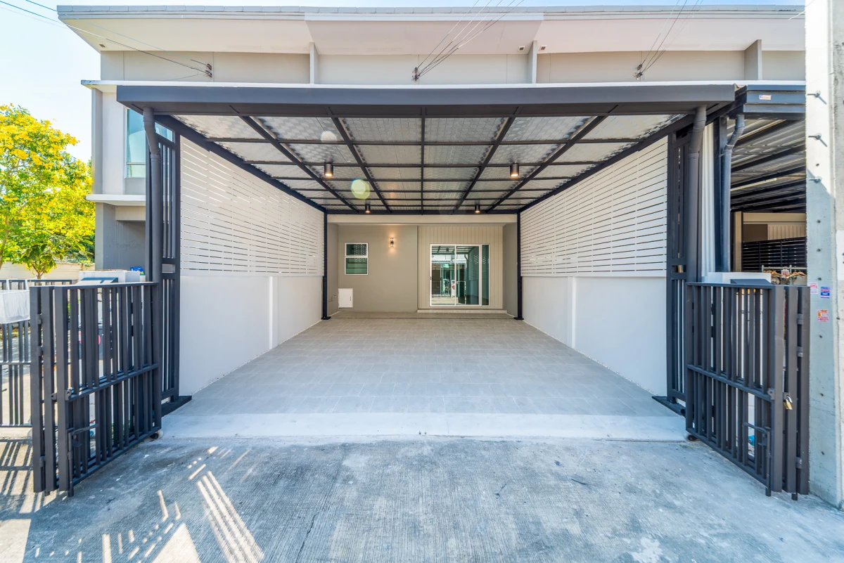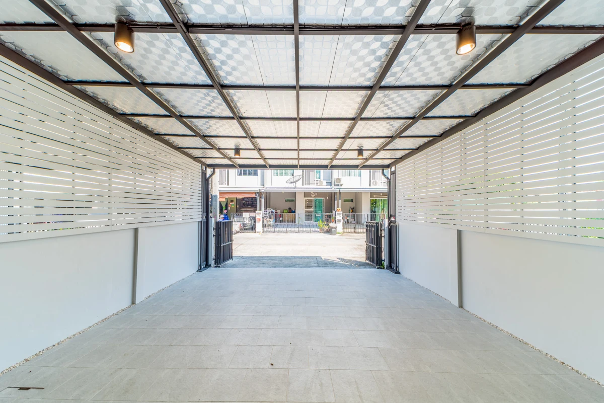 โครงการ พฤกษาวิลล์ รามคำแหง-ร่มเกล้า ทาวน์โฮม 2 ชั้น ต่อเติมหลังคาโรงจอดรถ และครัวพร้อมเคาน์เตอร์ครบ